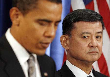 I believe Shinseki was selected as a rebuke to Bush’s failed previous appointment and that Obama didn’t have the guts nor the acumen to move outside the military tradition that Bush had used. I believe that Shinseki is an ‘honorable’ person who stood out amongst a group of otherwise hyper ambitious possible candidates and his tiff with the Bushies looked ‘good’ politically at the time. In my opinion it is about the only appointment Obama has made where the candidate at least showed some individual integrity rather than his usual